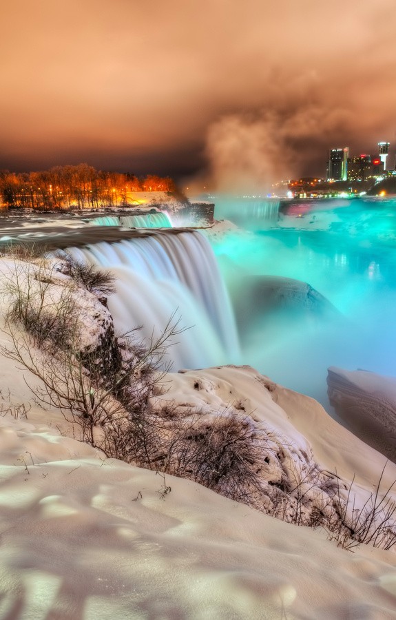 位于加拿大安大略省和美国纽约州的交界处,是北美东北部尼亚加拉河上的大瀑布,也是美洲大陆最著名的奇景之一。