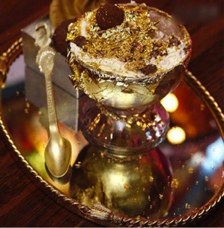 auTruffle小块巧克力,并将其装在精制的金边碗中,再配上镶有钻石的小匙。一份这样的冰淇淋价值16万人民币,不过碗和匙是可以带走的。如果想品尝这种冰淇淋,您需要提前订制。