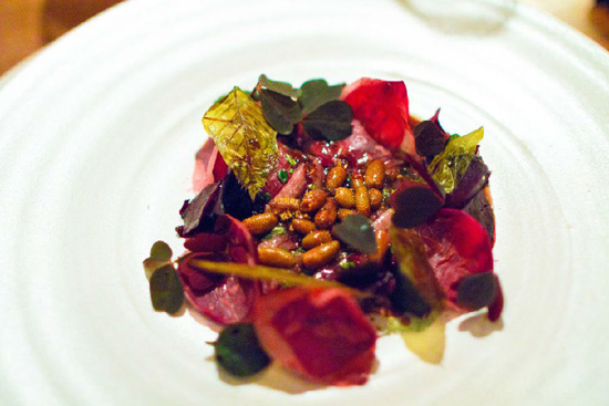 第20道,最后一道主菜:野鸭和甜菜山毛榉配麦芽酒。