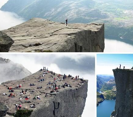 挪威著名的布道坛岩,因为被俗称为“传道者的讲台”为人们熟知,它是一处高1982英尺(约604米)的平顶悬崖。这里给那些辛苦爬上崖顶的人们一个难以置信的观看吕瑟峡湾的角度。每年有将近10万人来到崖顶平坦、通畅的区域游览。管理者建议游客们最好不要太靠近悬崖边缘,但这似乎不能阻止那些寻找拍摄最佳照片机会的人。