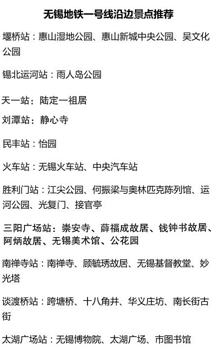 【锡游记】必转发!地铁一号线周边景点奉上!