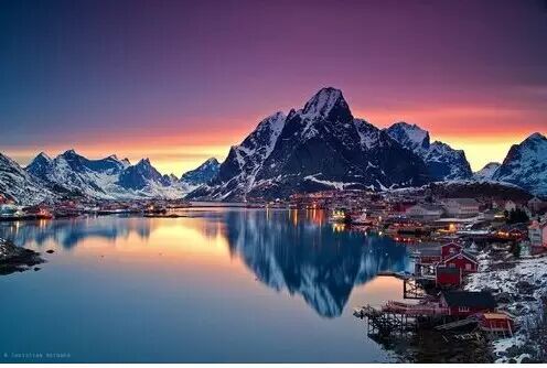 壮观的罗弗敦群岛是由上古的冰川雕琢而成的。Vestfjorden峡湾把它和挪威大陆隔离了开来,把它孤零零留在了辽阔的海上。
