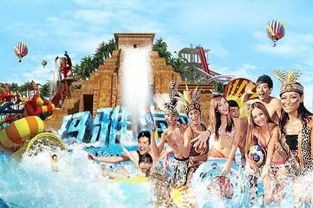 公园占地12万平方米,拥有世界领先的双轨水上过山车“大黄蜂”、 亚洲最大直径23米超级大喇叭、世界水上竞速之王“大章鱼滑道”、世界最受欢迎深海漩涡体验项目“巨兽碗”、世界最大的魔幻互动水寨“玛雅水寨”等18大亲水游乐项目,其中多项获得国际行业协会最佳水上游乐设备奖。更有星光熠熠夏浪音乐节、异域风情歌舞、互动主题游戏等精彩呈现,给您带来前所未有的超凡感官体验。