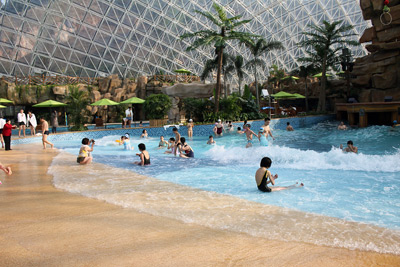 是集惊险、刺激、动感、娱乐、休闲于一身的国际顶尖大型水上游乐王国。园区采用海岸真沙铺设,由九大游乐区域组合而成,极具参与性和体验性。真空造浪池真实还原海滩景貌,海啸浪高可达3米,在国内水上乐园中首屈一指。