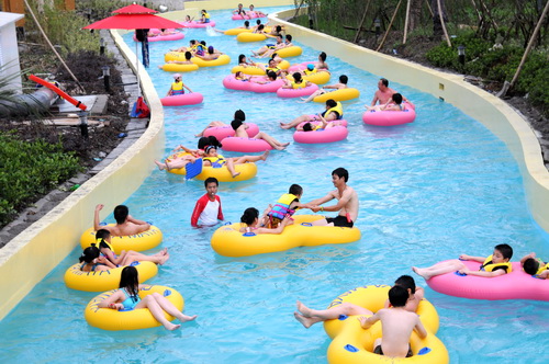 水上游乐区域对老外陈旧的游乐设备进行了拆除,并引进了更多安全、可靠并具有很强参与性的新式 项目,如大型漂流河、旋风滑道、章鱼滑道等。当然,新水上乐园的SPA区域将给游客带来更多选择,内有死海浴池、玫瑰花汤、鱼疗池等13座特色池。除了硬件设施的升,新水上乐园加大了软件的改进力度,对内部环境进行全新设计,营造了充满浓郁东南亚风情的氛围,同时增强了休息区的遮 阳效果和在天气转凉时提供温水等措施,力争让游客满意。