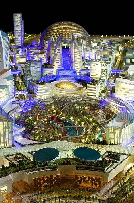 迪拜夏日的温度可以高达50摄氏度,但是这完全不能阻挡迪拜人发展高端旅游行业的脚步,为了摆脱季节性旅游的限制,他们正要搭建一座世界最大,连街道都是可温控的“城中之城”名为“Mall of the World”(世界商城)。