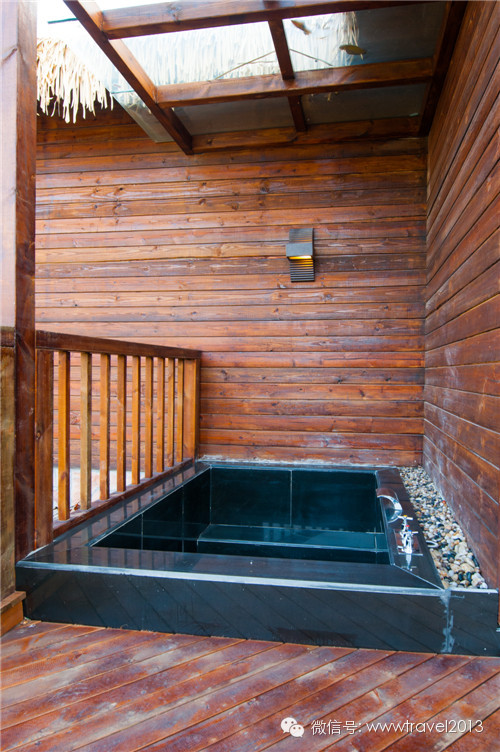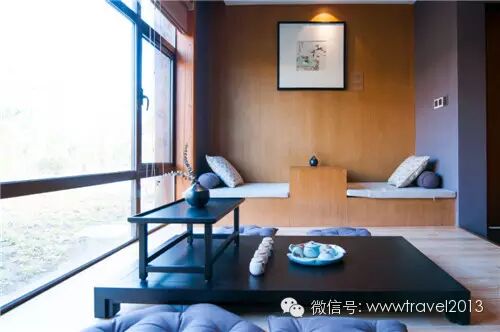 房间内布置地简约舒适,晚上睡觉前泡在室内温泉池中,全身心都舒展开,自然可以享受一夜好眠。梦里有阳光鸟鸣,春暖花开,醒来时推开窗户,果见东篱。把酒或烹茶,把工作都推到一边,何不像一位真正的隐居客,谈笑和乐,只话桑麻。
