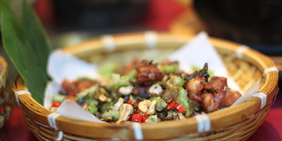 如不是要老板出来亲自引路,真不敢相信“食客三千”就藏匿在无锡一个平平常常的弄堂里面,进门可是别有洞天啊~! 怀旧的老房子面积不大,但每一个包间都很用心装饰,墙上的书法字画、竹编篮子的吊灯、老旧的桌椅板凳,搭配大红大绿的布艺,艺术气息扑面而来。原来经营饭店的是一对年轻的艺术家夫妇,墙上的字画都是出自老板之手,当然很有情调的装潢风格也是他们的杰作了。