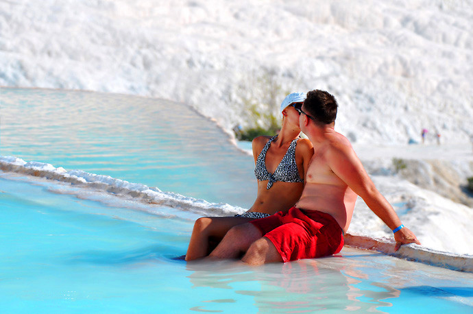 棉花堡有14000年的古老历史,古罗马时期,只有达官贵人才能有条件到这里来泡温泉。来到棉花堡,甩开鞋袜,赤脚走在洁白的石灰岩台田上,跳进一个又一个温润的泉池,好似整个身体都融化在棉花堡之中,超赞!