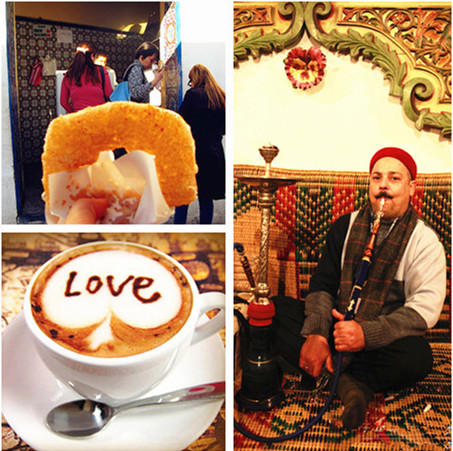 在蓝白小镇必做的三件事:品尝着突尼斯咖啡,欣赏地中海风光;尝尝街头小店的炸面圈,是比较容易驾驭的味觉体验;在“草席咖啡馆”喝杯薄荷茶,再试着吸一下突尼斯水烟,体验吞云吐雾的异域风情……这三大组合真的很疯狂!