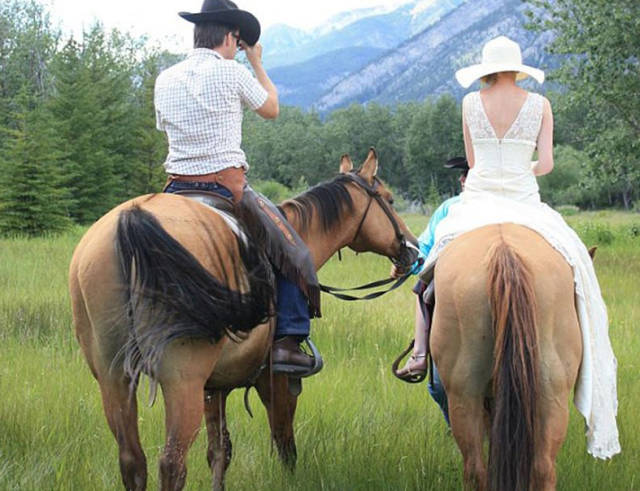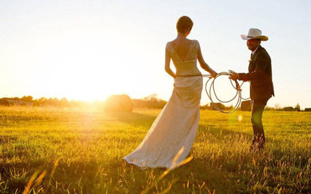 上图为夫妇俩在美国德克萨斯州牧场举行的婚礼