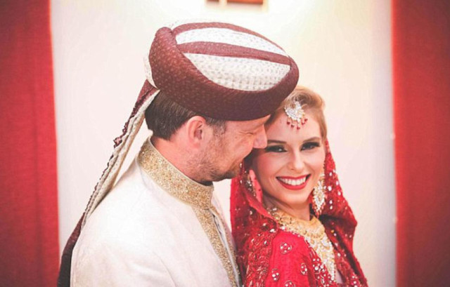 上图为夫妇俩在巴基斯坦举行的婚礼