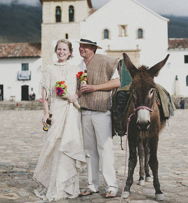 上图为夫妇俩在哥伦比亚举行的婚礼