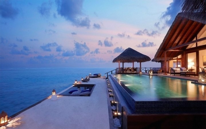 16. 在马尔代夫,体验漂浮海面的小屋。