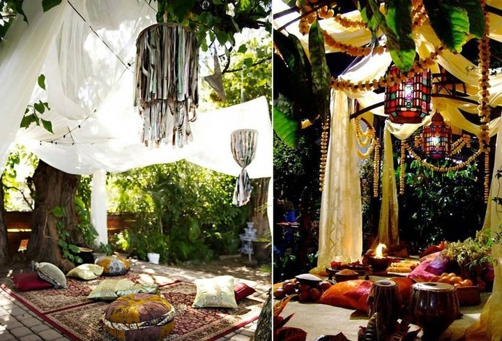 29. 坐在波西米亚后花园中的厚椅垫上。