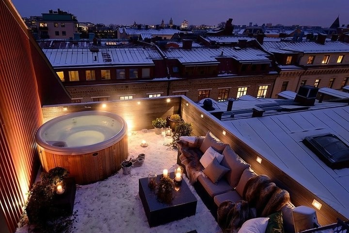 10. 在瑞典哥特堡,泡顶楼盆浴。