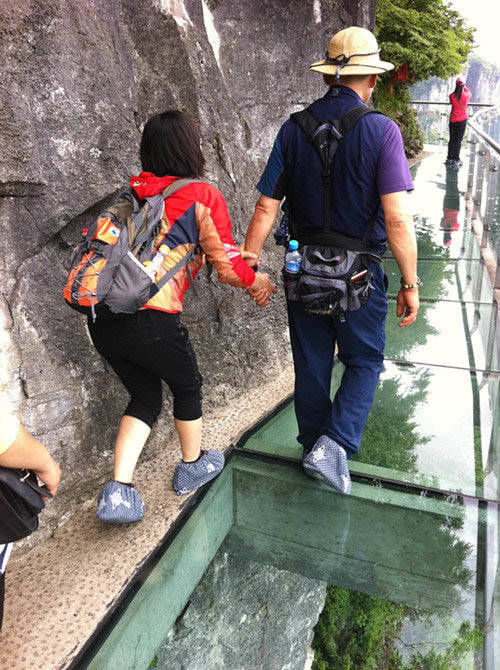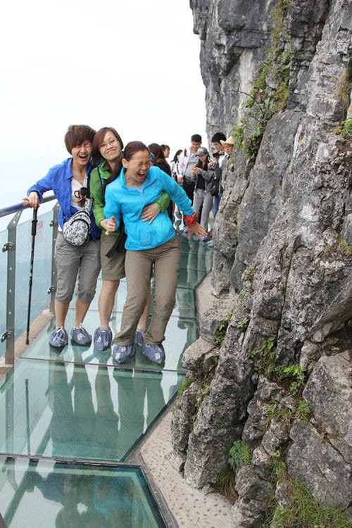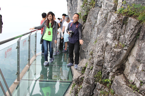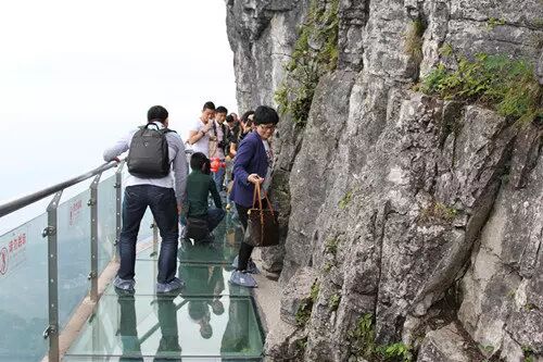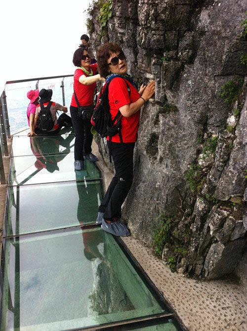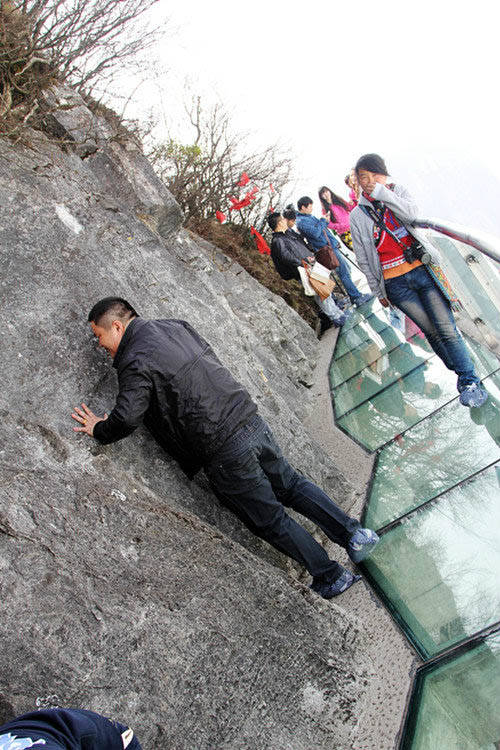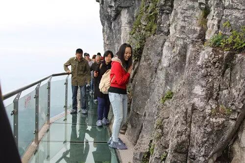 天门山玻璃栈道:爆笑的“扶墙一族”!