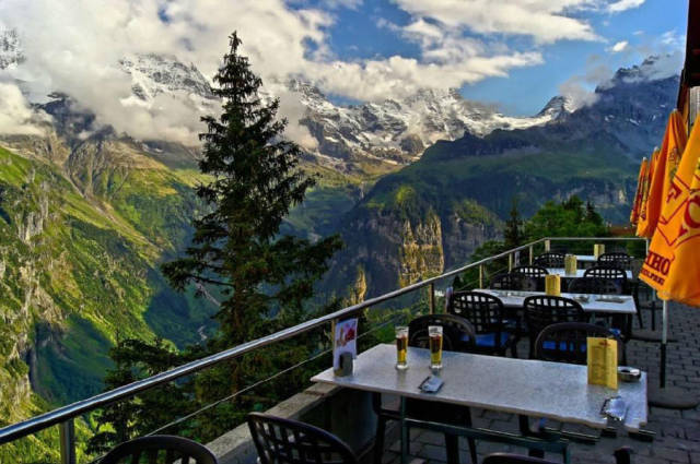 瑞士风光山峦的美直击人心,话说小编时常觉得国内的贵州山水也是一绝,但和人家瑞士风光放在一起,立马就能知道谁是上帝的宠儿,你能想象在阿尔卑斯山脉21座山峰的环绕下品味佳肴和当地啤酒的尽兴享受吗?Hotel Edelweiss距离地面1920米,以瑞士雪山作为大背景,世界上能享受这等待遇的也仅此一家了。