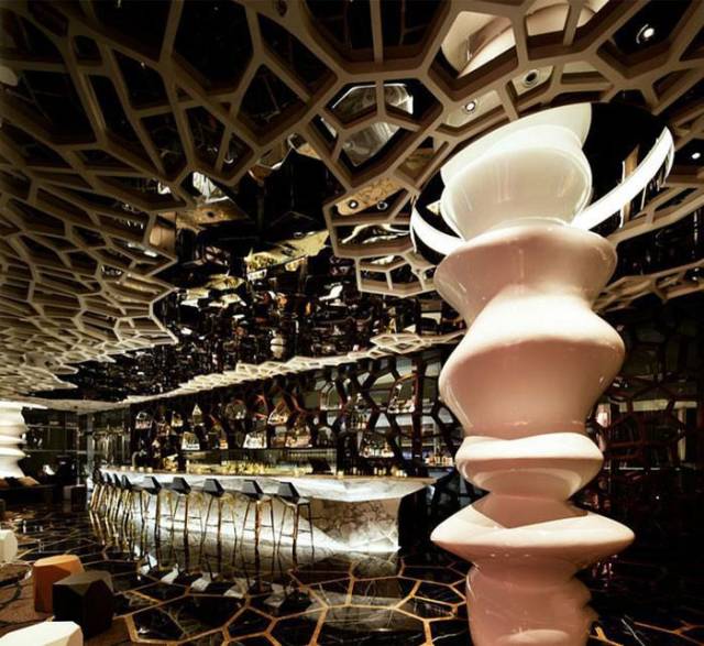 看看这个酒吧的奇特设计,这并不是华而无实,而是为了营造最佳的音乐视听效果,在这个酒吧里,无论你坐在哪个角落,都仿佛就在舞台的旁边。