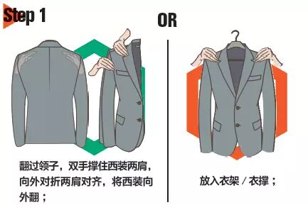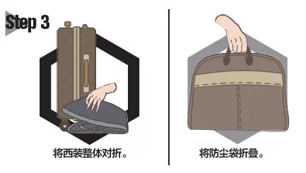 对于短期旅行,回弹性稍差的棉、麻材质的西装需要用衣架支撑并装在专门的衣物袋(Garment bag)中,这样可保护西装版型以及防止压褶。而对于更常见的羊毛、羊绒等纤维面料的西装精心打包后可以放在行李箱中,具有抗皱功能面料的西装更为商旅人士准备。