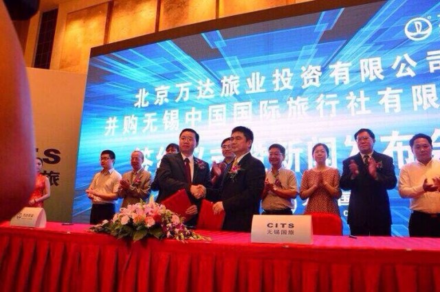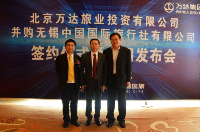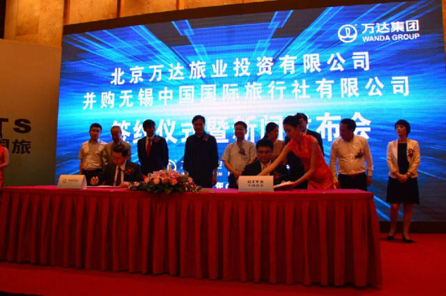 9月26日,北京万达旅业投资有限公司并购无锡中国国际旅行社有限公司签约仪式暨新闻发布会在无锡万达喜来登酒店举行。