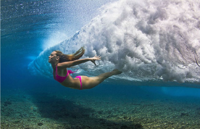 艾莉森跳入清澈的水中——向人们展示马尔代夫的海水本该是这般清澈。