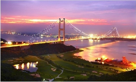 中国第一、世界第四的特大跨径钢悬索桥江阴长江公路大桥,是沟通同三(黑龙江同江一海南三亚)和京沪两大国道主干线的过江“咽喉”。江阴大桥桥型采用主跨为1385米的钢悬索,于1994年开工建设,1999年10月建成通车。