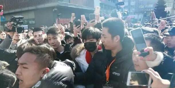 一出现便被热情的粉丝所包围,工作人员不得不“护卫”王俊凯进入考场。