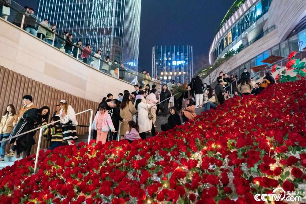 重庆:20米长玫瑰阶梯亮相街头