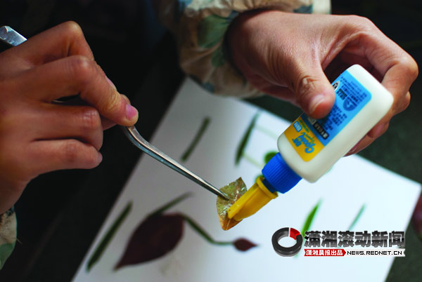 (④整体布局好,用胶水小心地将叶片沾上即可。