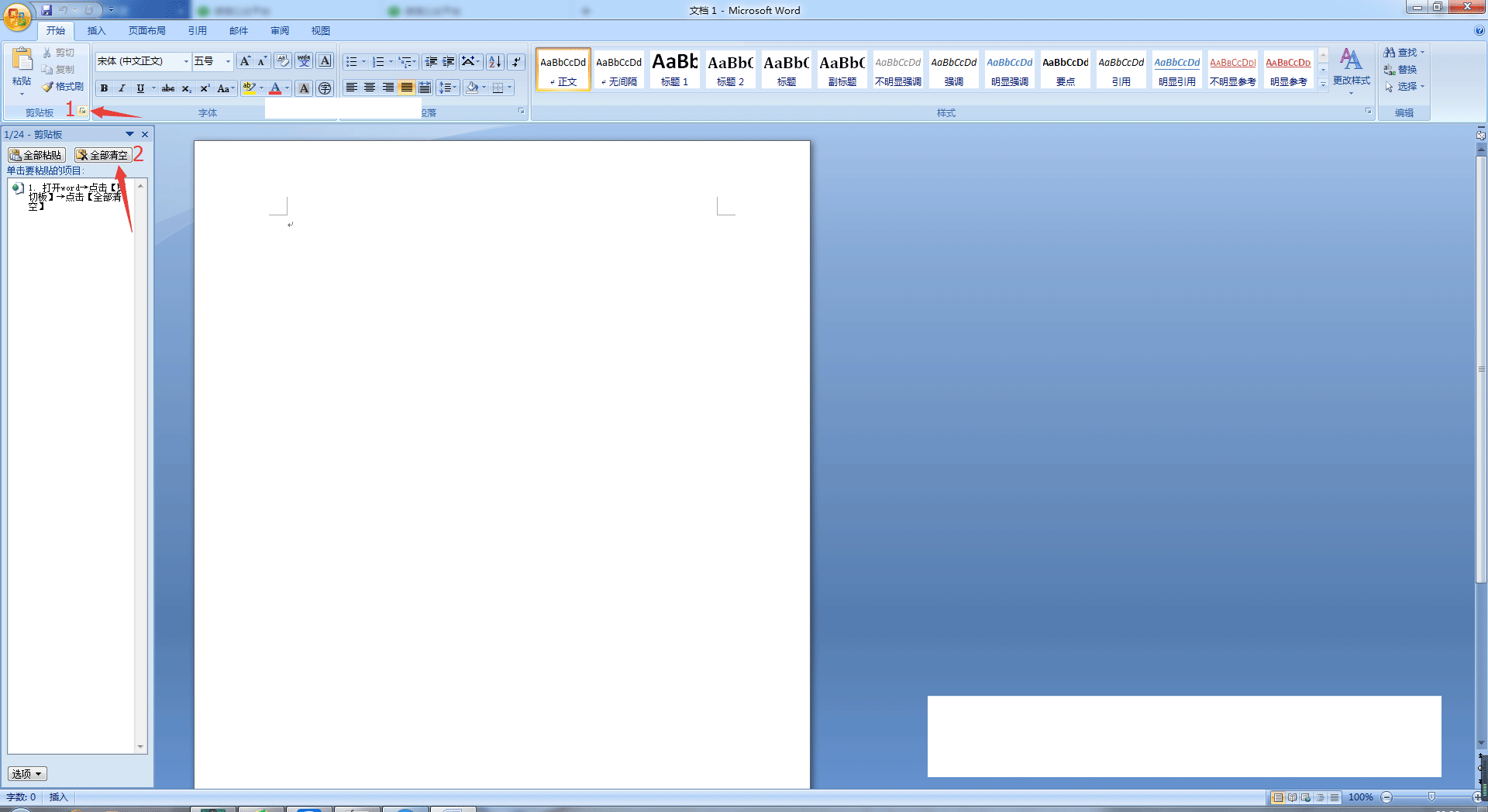 1. 打开word→点击【剪切板】→点击【全部清空】