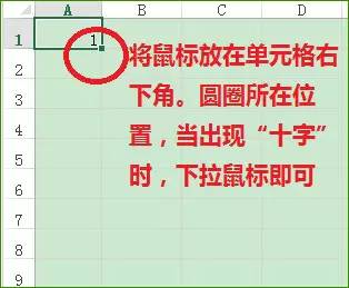 将鼠标放在单元格右下角,圆圈所在位置,当出现“十”字时,按住Ctrl键,然后下拉即可。