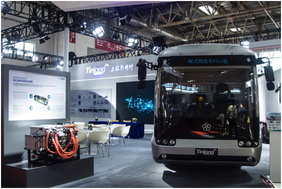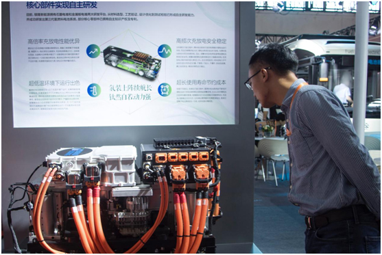 本次展会上,银隆新能源首次对外展出新一代氢燃料电池客车,搭载银隆自主研发的氢钛动力总成技术,由“氢燃料电池发电系统+钛酸锂动力电池组”组成,集成了氢燃料电池的高能量转化效率与钛酸锂电池的高功率、高安全、长寿命的优势,二者优势互补,具有续航里程高、动力强劲、环境适应性强、运行噪音低、排放零污染、运行高安全等优势。