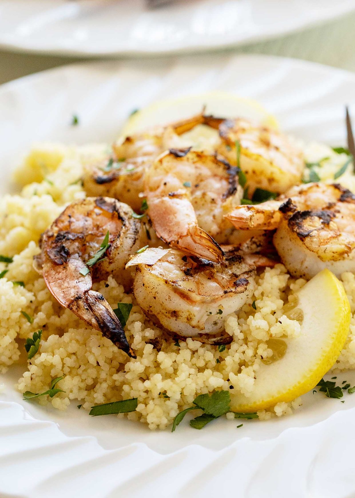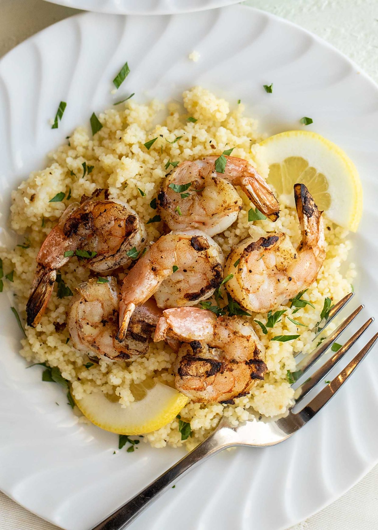 虾大约烤五分钟,而蒸粗麦粉则煮五分钟。即使您单独进行操作,您也正在查看一个10分钟的项目,但是,如果您将它们一起进行,则速度非常快。