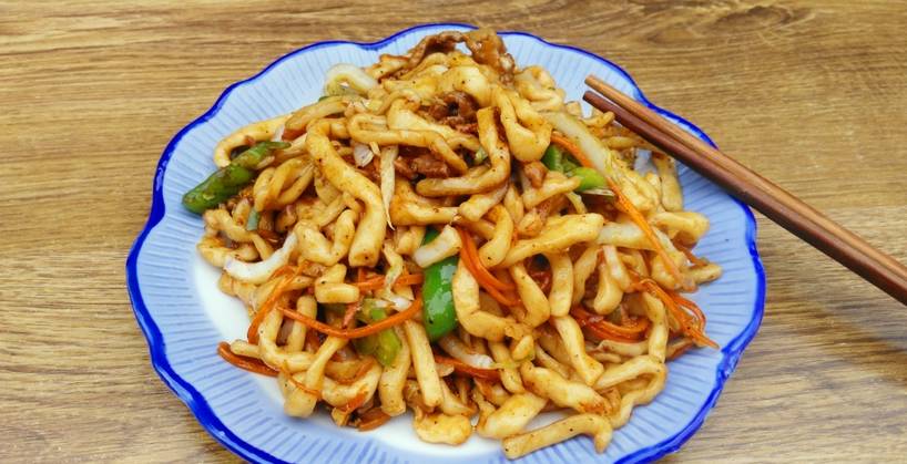 在襄阳也非常有名。薄刀是一种薄面条,经水煮、烹制后颇有特色,既可作为宴上美点,又可作为家常小吃。樊城薄刀属于热炒类菜肴,主要原料有精面粉、水发玉兰片、鲜猪肉等。烹制好的薄刀没有汤汁,面片煎炒时以上色入味为主,颜色金黄,色调素雅,质焦脆有韧性,清淡爽口,味鲜美。