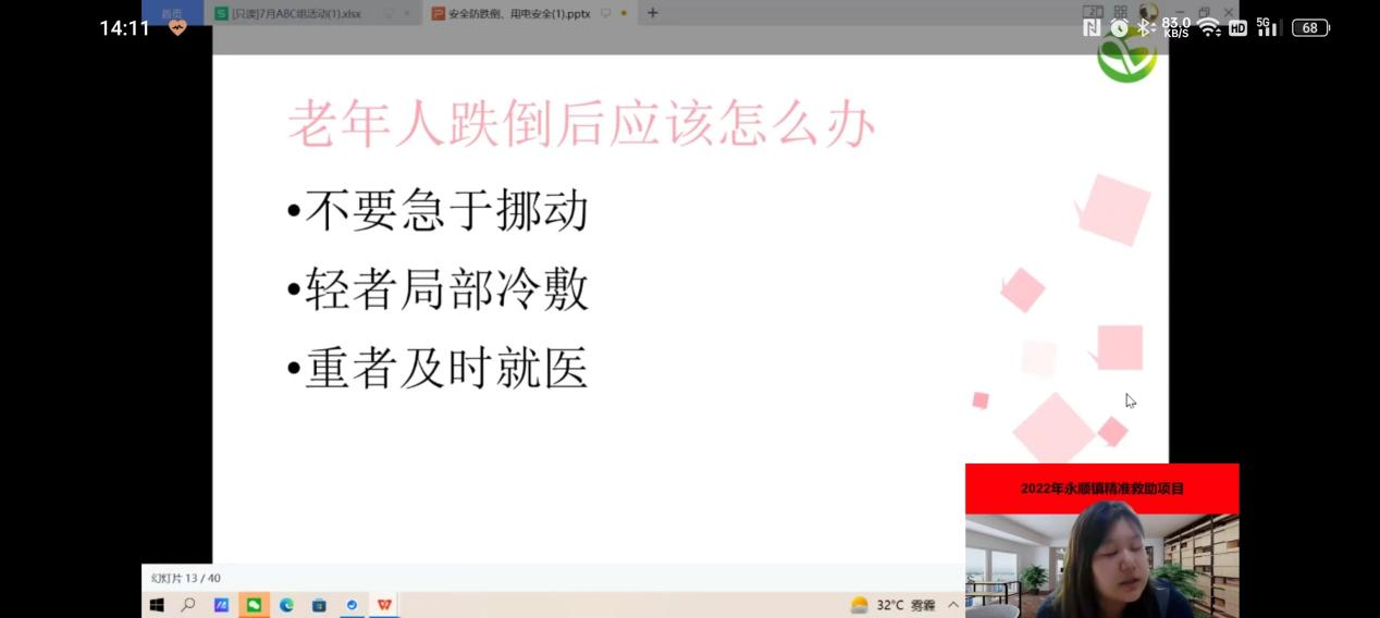 (记者 常魁星 通讯员 姜可齐)跌倒只是偶尔不小心摔了一下吗?对老年人来说,跌倒或许后患无穷,甚至可能是致命的伤害!7月5日,北京市通州区永顺街道联合北京市通州区春晓心理社会工作事务所举办了“老年人防跌倒知识讲座”,提高社区老年人的居家安全和防跌意识,普及预防跌倒伤害知识,增强老年人自身防跌倒能力。