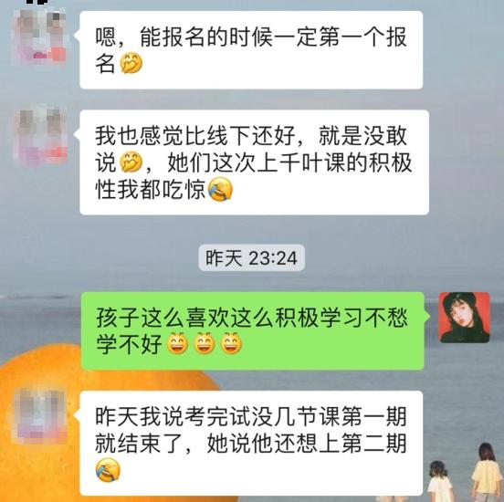 暑假班一期课结课后,有孩子给她发微信:“老师,我好想你!”杨雨萌老师觉得那一刻,超级开心!