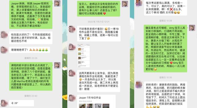 暑期班开课以来,程荣荣老师每天早晨8点左右,会将孩子们当天的晨读内容发到群里,听孩子们朗读并细致点评。