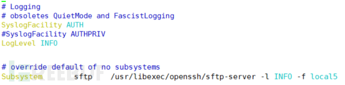 默认情况下SSHD服务作为linux操作系统管理方法,其自带sftp(Secure File Transfer Protocol,安全文件传送协议)可以为传输文件提供一种安全的加密方法。可以实现命令执行以及文件上传下载功能,且默认上传和下载功能通常日志通常不存在,需要通过配置/etc/ssh/sshd_config配置文件来实现配置,进而实现SFTP日志的记录。