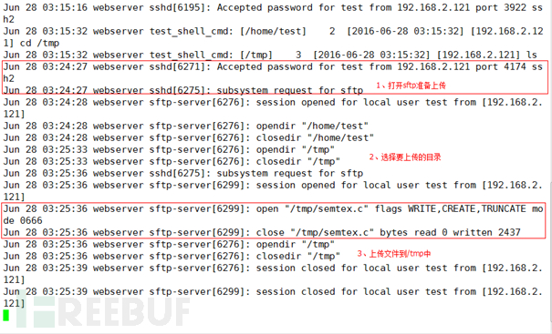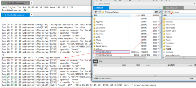 Sftp上传则会在/var/log/messages中存在上传日志。