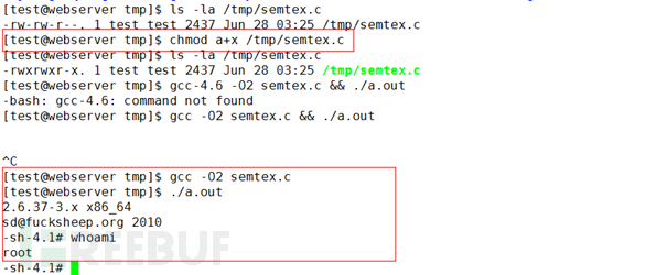 提权脚本如下:http://fucksheep.org/~sd/warez/semtex.c