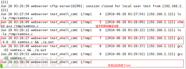 通过/var/log/messages日志可以明确的看出整个提权过程。