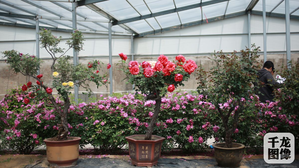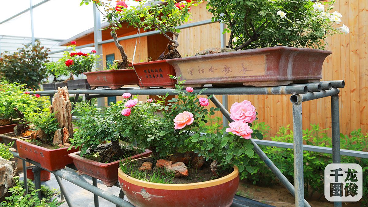2016世界月季洲际大会将于5月18日在北京市大兴区魏善庄镇正式开幕。图为制作精良的月季盆景,神韵生动,极具感染力。千龙网实习记者 朱依摄