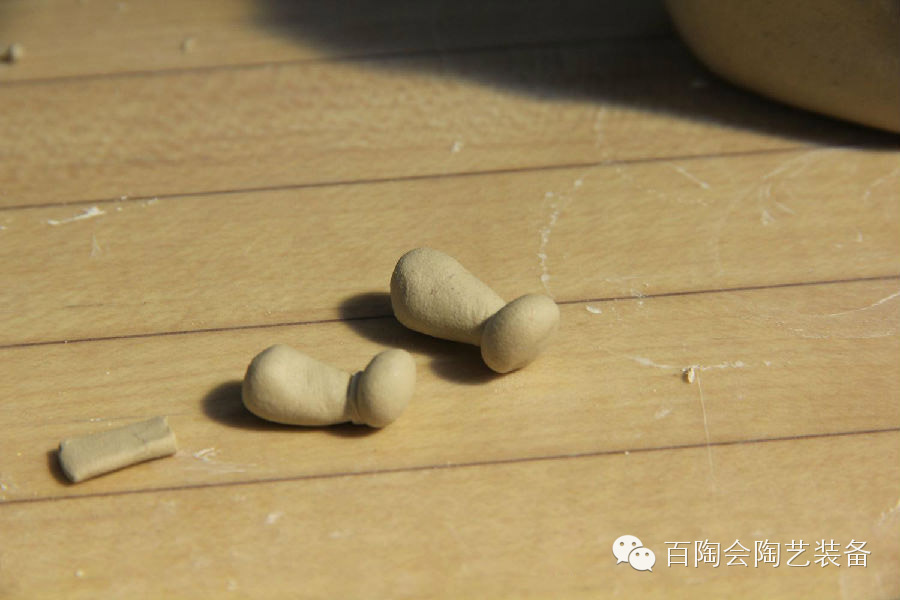 9、搓两根长约2厘米泥条并将其压扁。