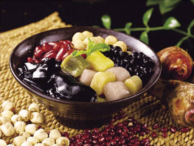 把仙草的茎叶晒干后熬水,加入淀粉放凉就凝结成果冻状了,配以糖水、珍珠、地瓜等,就成了女孩们挚爱的甜品。