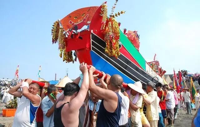 每年大暑在浙江椒江口要“送大暑船”,船身长约8米,宽约2米,内设香案神龛,以及猪羊鸡鱼酒米等食品和桌椅床榻等生活用品。