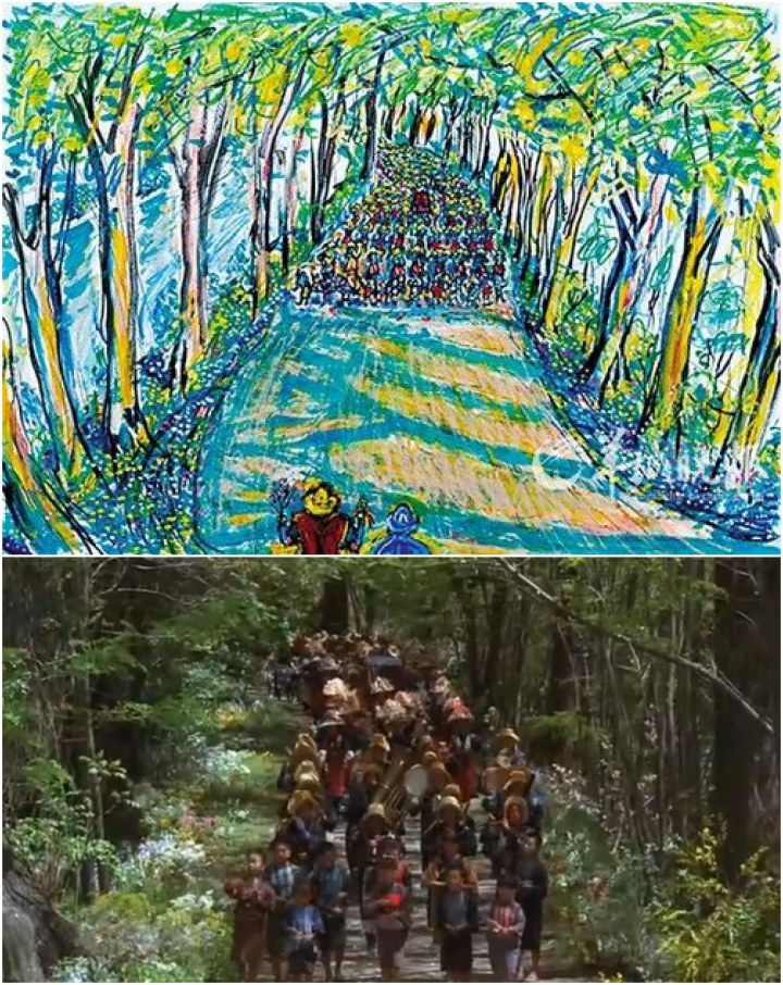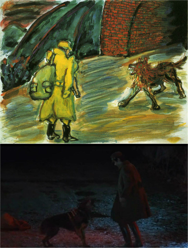 黑泽明绘制的分镜头和电影场景对照: