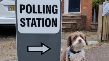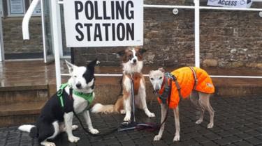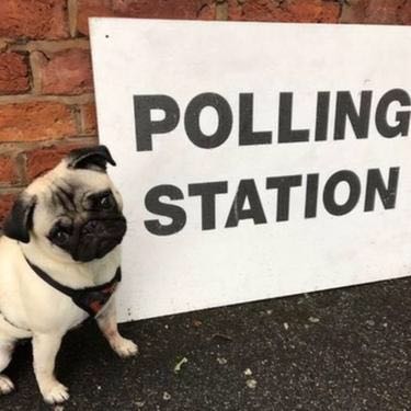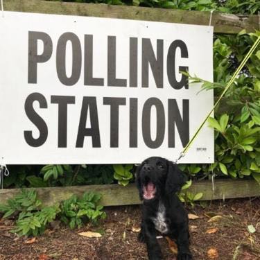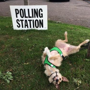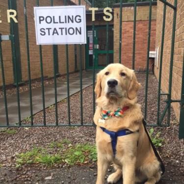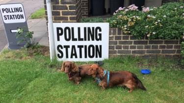 英国2017年大选迎来投票日,随各自主人前往投票站的狗狗们成为社交媒体网红。