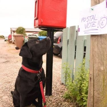 在社交媒体推特上,选民们纷纷将自家狗狗在投票站外面的上载,使得#DogsAtPollingStations(投票站外的狗)成为搜索热词。
