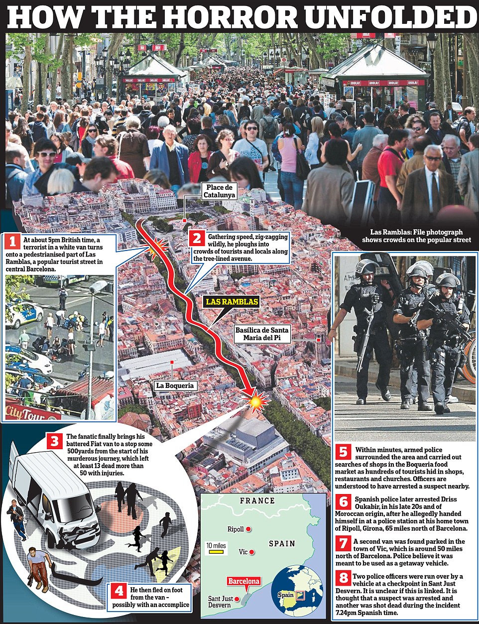 警方还发布了一张名叫德里斯•奥巴克尔(Driss Oubakir)的男子的照片。据称他的身份证件被用于租赁袭击者驾驶的车辆。当地媒体称德里斯今年20多岁,出生在摩洛哥。但稍后的报道称他已经向警方证实自己的证件被盗。